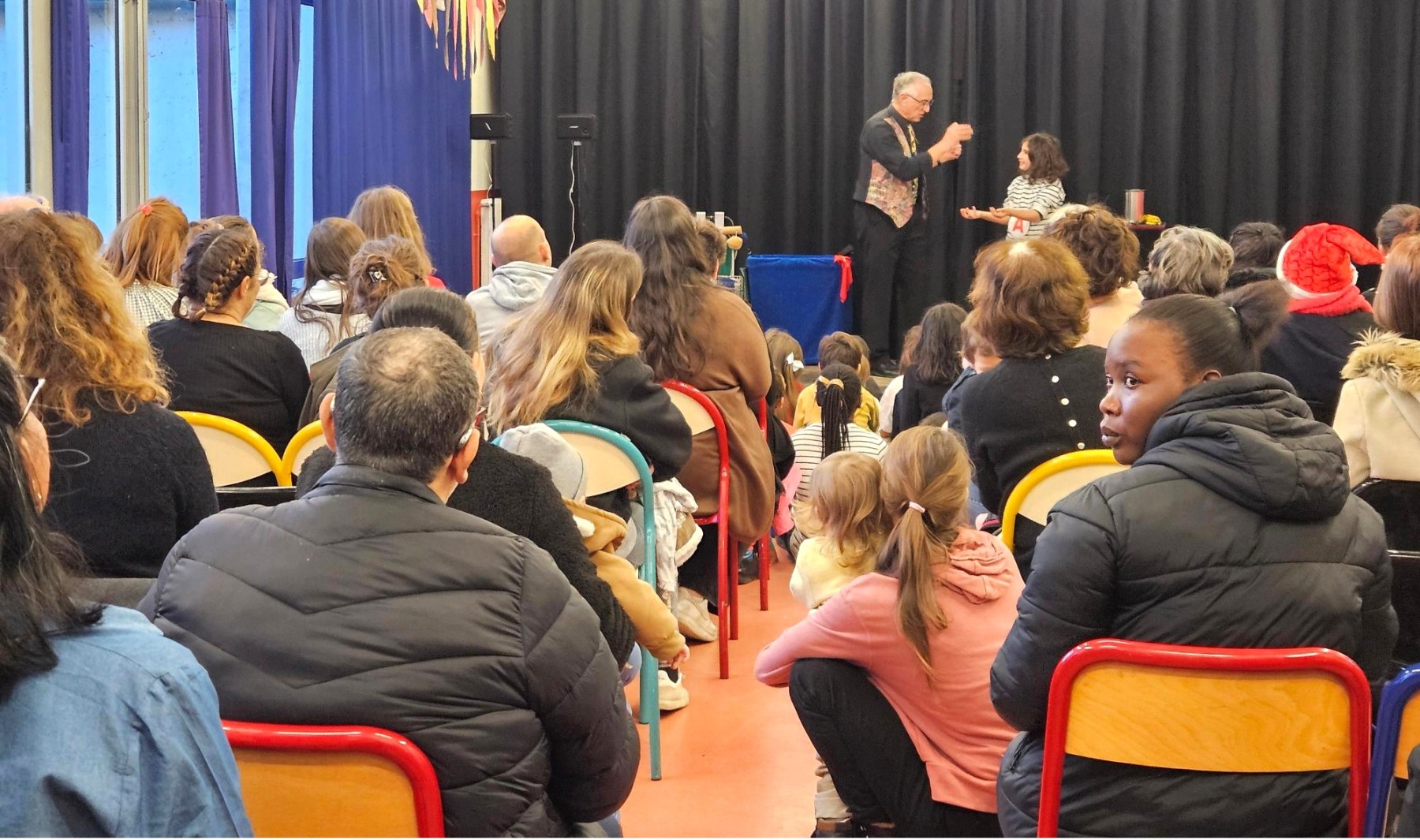Un vent de magie a soufflé sur le Centre Socioculturel d’Orthez en cette fin d’année 2025. Près de 150 personnes se sont réunies pour vivre, en famille, une après‑midi placée sous le signe de l’émerveillement. En cette belle journée de Noël, les bénévoles du Centre ainsi que les participants des ateliers sociolinguistiques avaient concocté un goûter festif à faire fondre les papilles de tous les gourmands ! Les chocolats chauds et leurs montagnes de chantilly chamallows, servis tout l’après-midi, grimaient les visages des plus jeunes de douces moustaches chocolatées. Souvenirs immortalisés par Pierre, bénévole de l’Atelier Photo, qui fit poser une quarantaine de familles devant un décor féérique. Pour poursuivre l’enchantement, le magicien Bastian fit salle comble en proposant ses tours de magie dont lui seul détient le secret (malgré les nombreux efforts des spectateurs pour percer ses mystères !) …